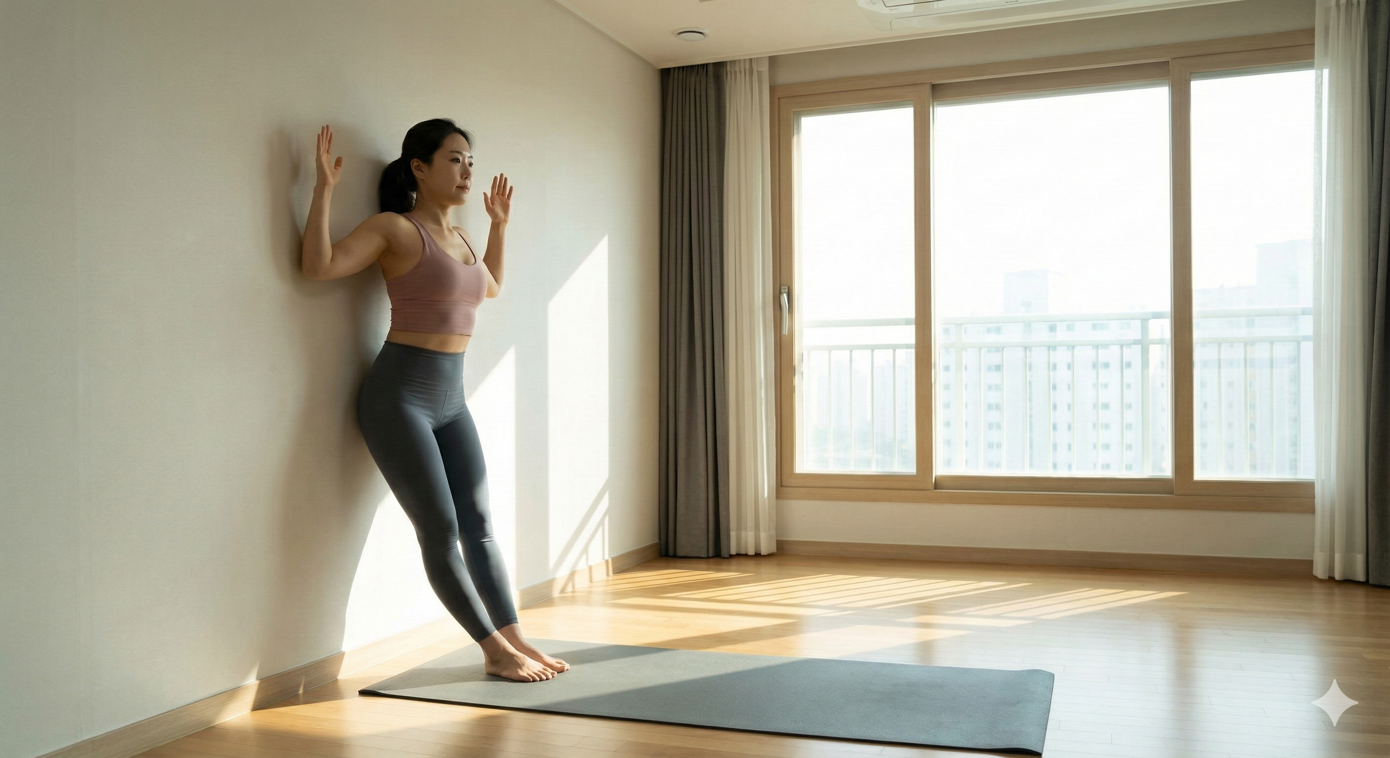 ③ 전신 라인을 잡는 '벽 밀착 서기'