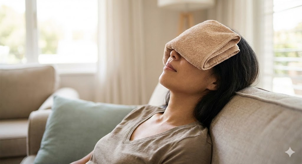 - 눈 위에 수건을 올리고 5분에서 10분간 편안하게 휴식을 취합니다.